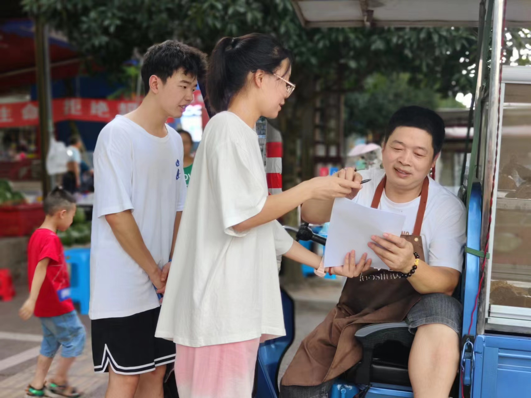 同学与村民合影