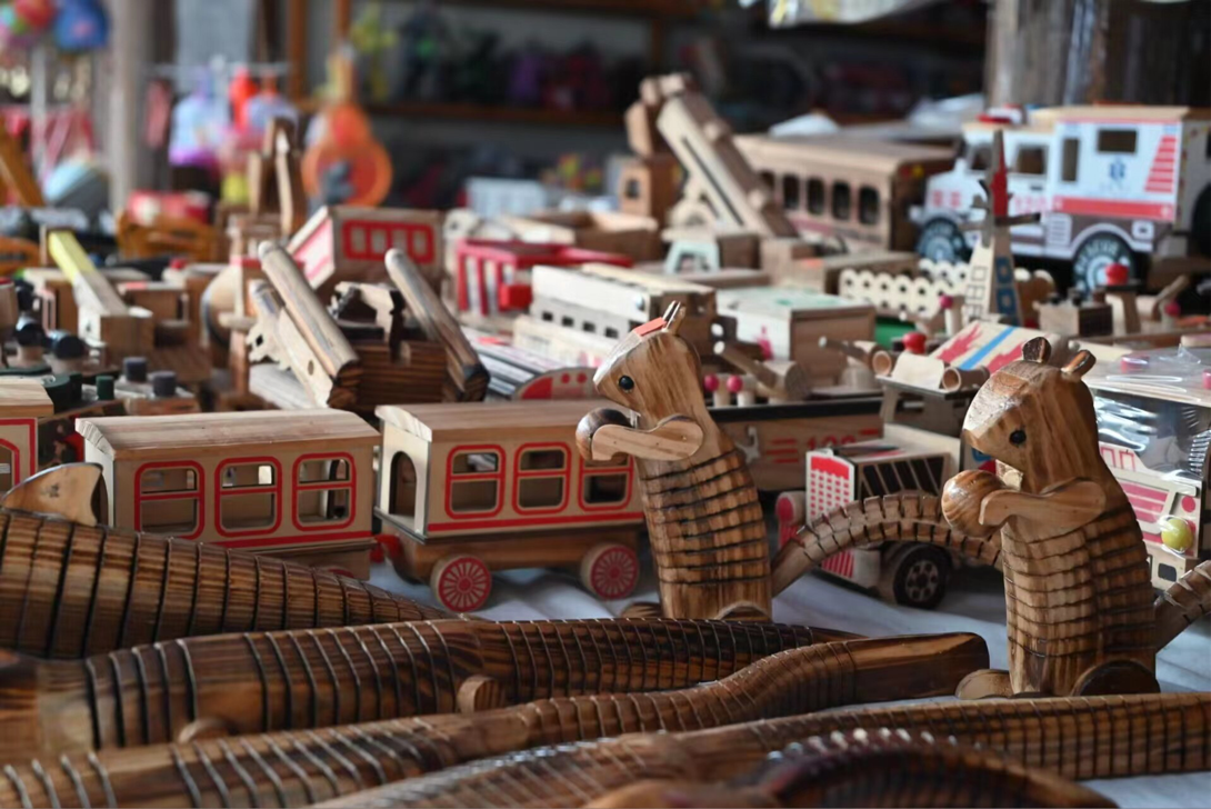 小队成员行走其间难免会被路边的竹编制品所吸引,用来淘米洗菜承载着烟火气的簸箕、点缀着编织物的背包、彩色的竹帽和裹着凉风带着童年记忆的蒲扇。成员们继续深入了解发现古镇的竹编种类繁多,瓷胎竹编,竹编篮,竹编画等,不止竹编,还有葫芦雕刻,葫芦笛,小葫芦挂坠,各种工艺品汇聚一堂,给古镇增添了一番韵味。