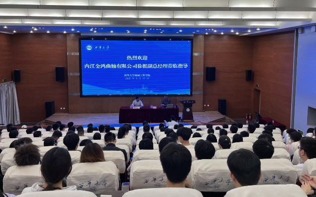 5月,邀请内江金鸿曲轴公司、成都富纳汇科技有限公司负责人来院开展就业指导