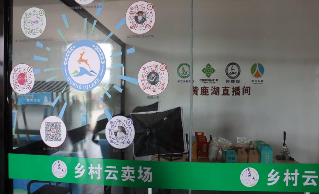 采访结束后,米华先生带领实践队参观了黄鹿湖农业公园规划馆内展示的当地特色农产品,而当地特色产品大部分是出售于其他省市,品质保证和产品宣传是当地提高经济收益的常用手段,当地就稻虾产品不但建立了自己的品牌体系,还通过直播代货等方式多方面销售,规划馆内设有直播间。