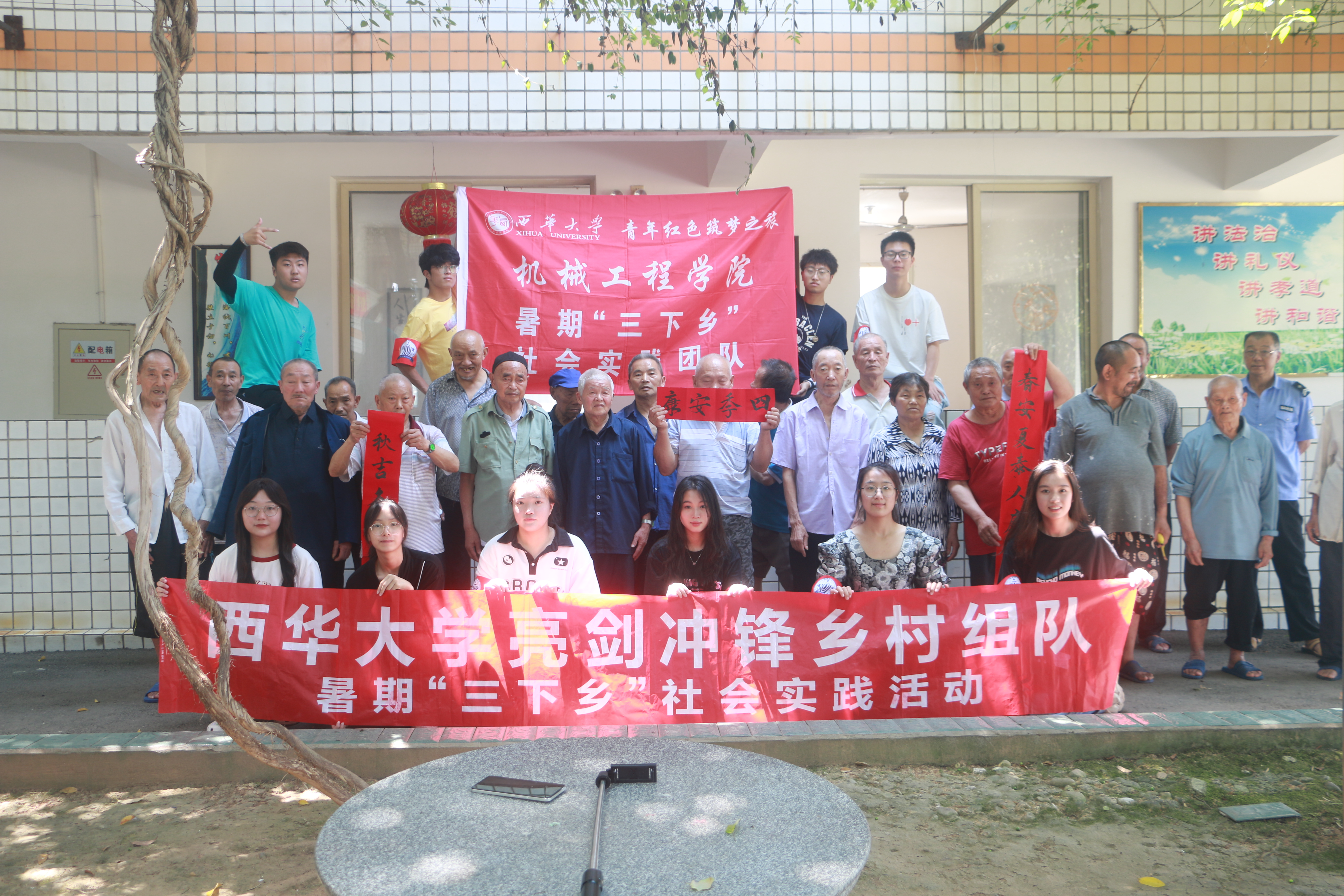 与敬老院老人合影 雷舒涵摄