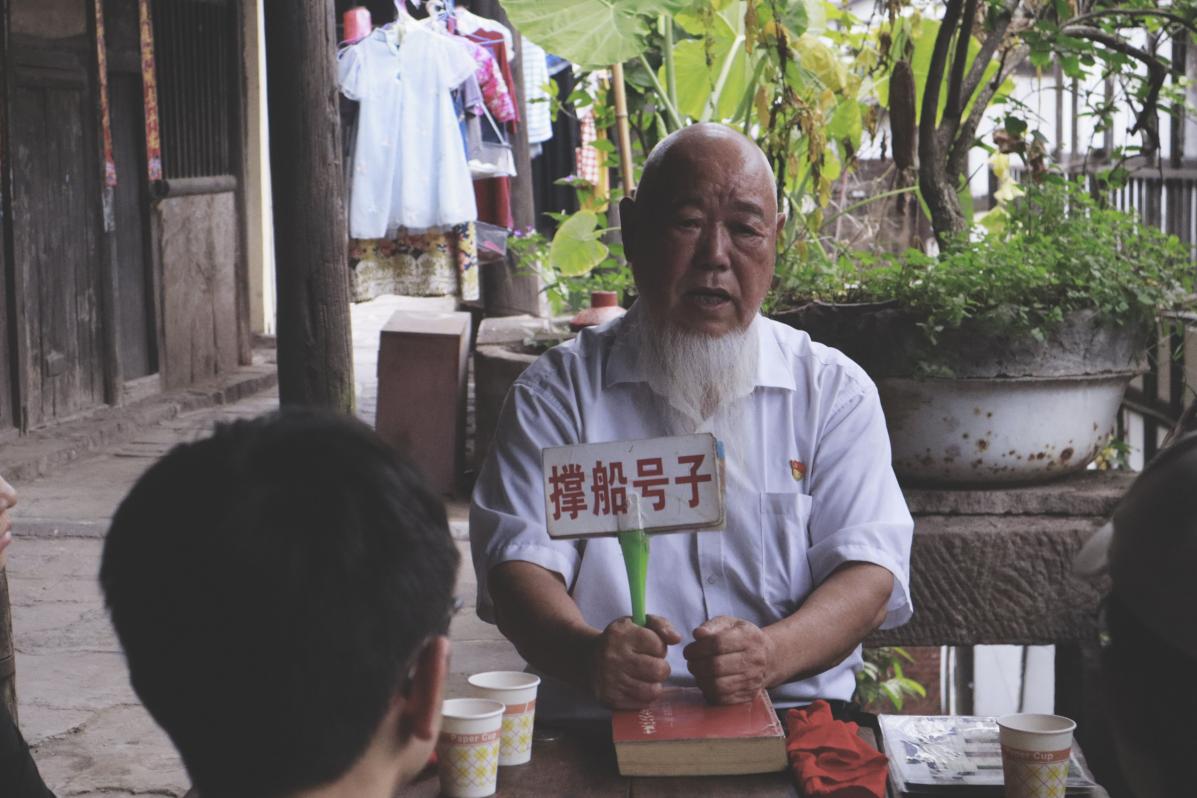 胡敬华爷爷从他父亲的故事讲到当年毛主席在青杠坡指挥战役的故事,再讲到自己十多岁就进入船队后的经历,讲到兴起,往往会唱几句船工号子。
