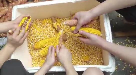 随后队员们来到村民家中,将采摘下来的玉米进行剥粒处理,本着劳动实践的精神,成员们依旧采用手工进行,靠着自己的双手将玉米棒进行剥粒。热心的村民给队员们分享了剥玉米的方法:右手拇指按住玉米粒,左右按压,玉米粒顺着手指间滑落,将玉米粒一列一列剥下,这样才能剥下胚芽的同时,保持玉米粒的完整。在村民的指导帮助下,8名成员齐心协力很快便完成了剥粒,大大减轻了村民的劳作时间和强度,赢得了村民的肯定与赞扬。