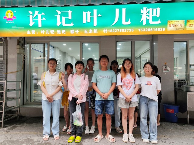 “聆听祥音”实践团在许记叶儿粑店长合照