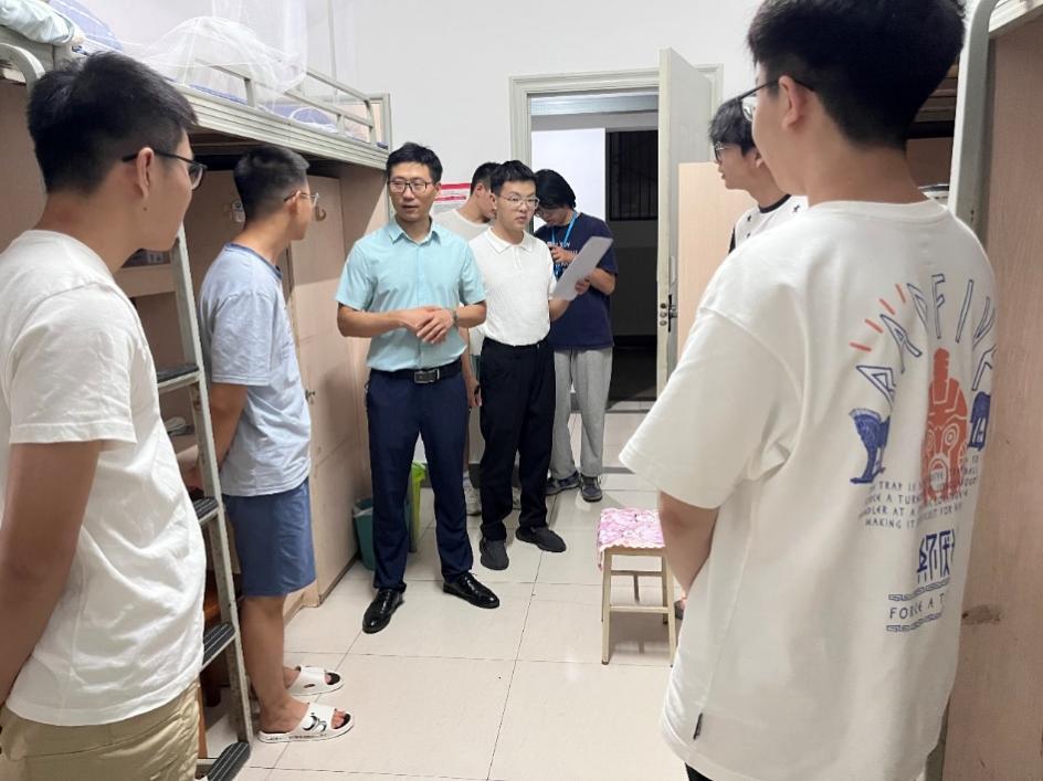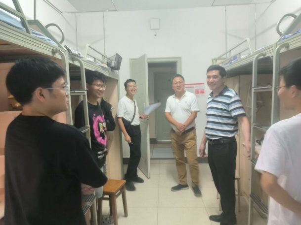 学院党委副书记、纪委书记李强、副院长徐全走进新生寝室看望大家。他们强调:大家要树立明确的大学生涯目标,积极参加学科竞赛和科创比赛等,不断丰富自己的课余生活,努力成为德智体美劳全面发展的新时代青年。”与此同时,他也告诫同学们一定要严格遵守学校规章制度,高标准要求自己,助力自己的大学生涯。