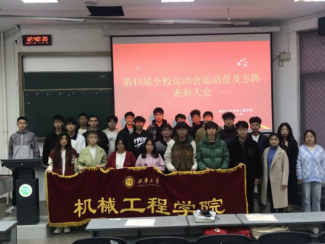 大会首先进行颁奖仪式,机械学院文体联合部部长陈璐璐宣读优秀运动员和方阵优秀个人名单,并指出,希望受到表彰的同学们珍惜荣誉、再接再厉、再创佳绩,院学生以先进典型为榜样,踔厉奋发、勇毅前行,在运动中绽放青春,在实践中锤炼本领,为学校和学院事业高质量发展贡献青春力量。朱利老师为获奖同学颁发奖状,并合影留恋。