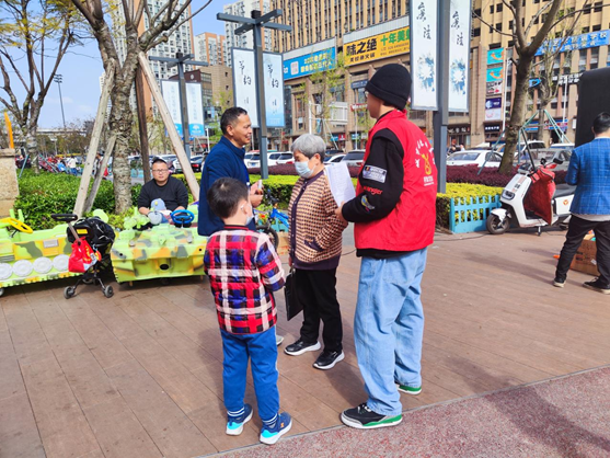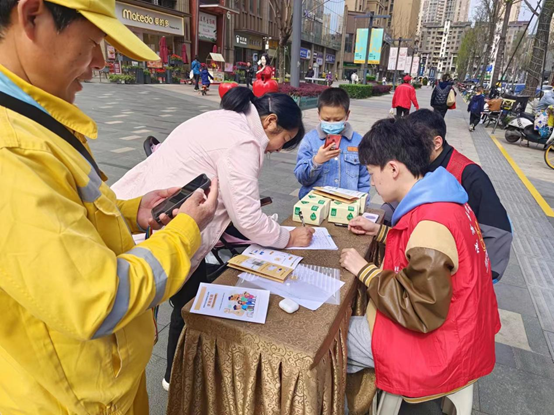 活动开始,社区的负责人先对此次活动发表讲话,对活动的目的以及内容进行简单阐述,并对志愿者们进行了合理的分工。志愿者三人一组,分别在社区负责人的带领下,前往不同的宣传地点。志愿者们穿好志愿服,撑起宣传牌,拿出奖品。前期的准备工作做好了之后,志愿者对来往的行人讲解此次活动的目的,并指导他们进行扫码注册,完成相关流程。