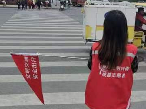 还有一些志愿者穿上红色马甲,手持红旗标语站在路口,劝导广大市民遵守交通规则,不乱穿行,不闯红灯,时时刻刻注意着路口上的行人安全,帮扶老弱病残孕安全过马路,保持路口交通的流畅。劝导红旗一次次地飞扬,便代表着志愿者们为维持交通安全和秩序所做出的努力,彰显出志愿者们的乐于助人和奉献精神。