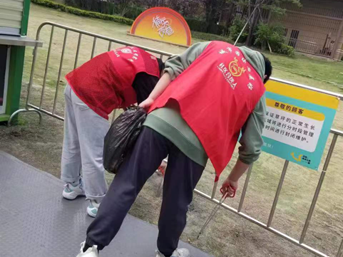 活动中,一些志愿者身穿马甲,手持垃圾袋和火钳,沿着小区绿化带拾起草坪和小道上的废弃物、生活垃圾、纸巾、果皮、食品袋、烟头等各种垃圾。每一个志愿者都充满干劲,相互配合,相互协助,不怕脏,不怕累。志愿者一次次地弯腰拾起垃圾,流下了一滴滴为创建文明城市付出努力的汗水。