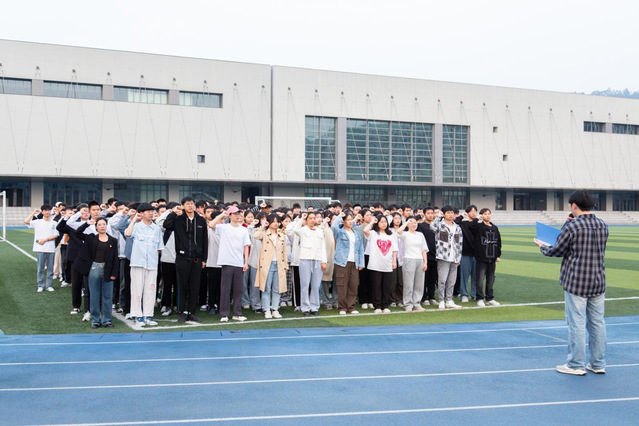 接着来到升旗仪式最后一项议程:国旗下宣誓。此项议程由2021级工业设计的靳虹坪同学带领全体同学在国旗下庄严宣誓。