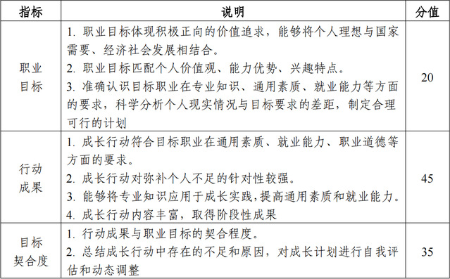 1.成长赛道。面向中低年级学生,侧重考察学生职业发展规划的科学性和围绕职业目标参与实习实践的成长过程,旨在帮助学生通过学习实践持续提升职业目标达成度,增强综合素质和能力。