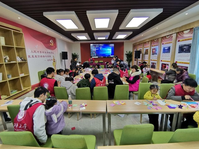 志愿者们指导小朋友们制作贺卡
