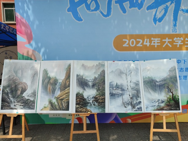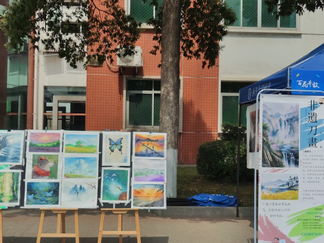 走到明德广场,首先映入眼帘的是一幅幅精美绝伦的刀画作品。这些作品或描绘山水风光,或展现校园风光,或勾勒花鸟鱼虫,每一幅都独具匠心,令人叹为观止。运用不同的画法和色彩,将刀画艺术的精髓发挥得淋漓尽致。有的作品线条流畅、色彩明艳,展现出了强烈的视觉冲击力;有的作品则细腻入微、意境深远,令人陶醉其中。