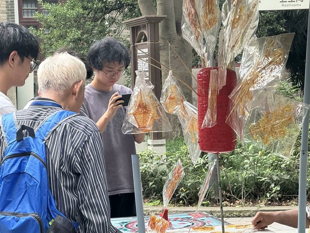 随后,实践团的成员们前去寻找手拿糖画的小朋友并简单询问了他们关于糖画的了解,发现小朋友们对于中国的非物质文化遗产不甚了解,于是便向他们介绍了糖画的起源与发展。关于糖画的起源,有两种说法。一种认为它起源于明代的“糖丞相”,后逐渐演变为糖画艺术;另一种说法则认为它起源于唐代的四川,相传是在古代“糖丞相”制作技艺的基础上演化而来。糖画在明清时期得到大发展,制作技艺日趋精妙,题材也更加广泛,多为龙、凤、鱼、猴等普通大众喜闻乐见的吉祥图案。虽然随着社会的发展和人们生活水平的提高,糖画这一传统民间手工艺逐渐受到更多人的关注和喜爱,许多地方都举办了糖画体验活动和文化展览,旨在传承和弘扬这一非物质文化遗产,但这其中仍有不足之处,大多人都只听过糖画这一技术,却不曾真正了解过它。这也更加体现了实践团今日活动的意义与重要性。