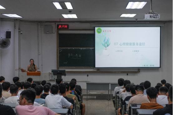 讲座伊始,老师们以益智小游戏调动学生积极性,而后分别从心理健康含义、自我评测心理健康水平、心理健康标准、常见的心理问题、社交适应等方面向同学们解释心理健康的重要性,并引导新生在大学期间尽快做好人生规划,明晰个人发展目标,同时处理好自己的心理问题,在必要时刻向老师和心理中心求助,讲座最后,还重点给大家介绍了心理健康服务的途径,包括心理健康教育中心的预约电话等。