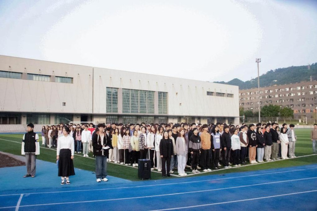 仪式最后,2023级工业设计1班王诗涵同学带领全体同学进行国旗下宣誓。在一张张年轻而朝气蓬勃的面庞上,写满了对祖国的热爱和感恩,坚定的誓言在校园上空久久回荡。