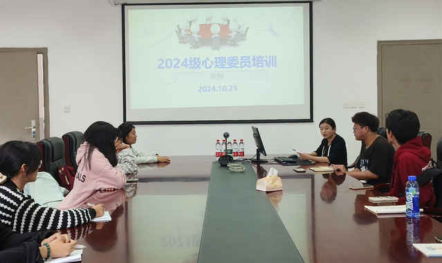 点击:152 为进一步加强学院心理健康教育工作,提升2024级心理委员工作能力和专业素养,加强学院团委学生会综合事务部和心理委员之间的联系,增进相互之间的感情,协力推进心理健康工作,为同学们的心理健康保驾护航,10月25日,学院在5A-224会议室举行2024级心理委员培训交流会。会议由学院心理健康指导老师朱利主讲,团委学生会综合事务部全体干部以及2024级全体新生心理委员参会。
