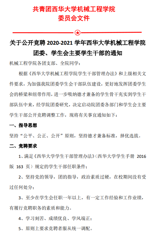 18届学生干部竞聘通知文件图