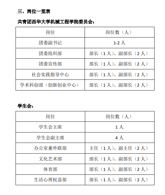 3、至少在学生会任职一年以上,有一定工作经验和工作业绩,有履行竞聘职务的素质和能力。