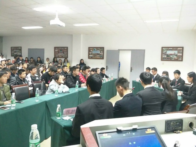 在辩论赛的“战场”上,时间真的飞逝。很快双方的辩论都要接近尾声了,当我们评委退席评议之时,观众朋友更是积极参与了进来,还有我们可爱的陈莉萍老师第一个举手提问呢。
