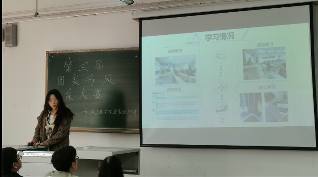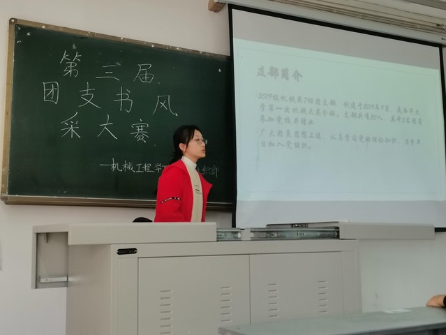 在主持人龚登凤的宣讲后,本次团支书风采大赛正式开始。首先是19级机电2班团支书进行宣讲,她对支部情况、学习情况、集体获奖情况、团组织生活情况、志愿活动进行了简单的介绍。之后18级工业设计3班进行宣讲,她对班级情况、班级组织建设情况、班级荣誉情况、团建活动情况、青年大学习情况进行了简单的介绍,分享了要如何做好团支书。随后19级工业设计1班团支书进行宣讲,对学习情况、往期团组织生活情况、青年大学习情况进行了简单介绍,也进行了团支书经验分享。最后,由主持人龚登凤对参加本次大赛的人员表示了由衷的感谢。至此,本次团支书风采大赛圆满结束。