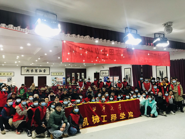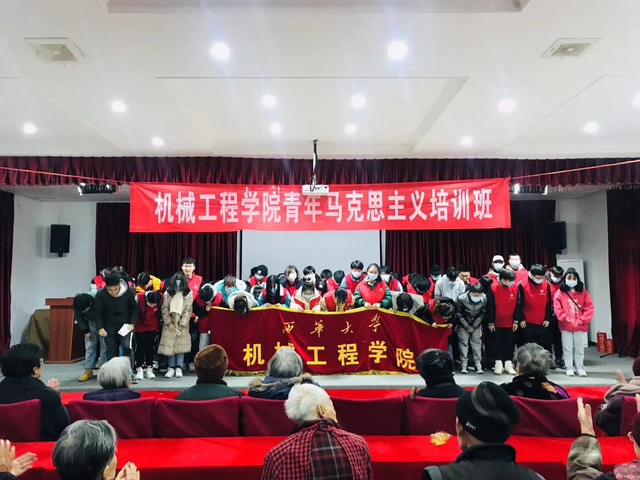 上午8点,志愿者到达成都晚霞社会养老服务中心。首先志愿者协助养老院工作人员引领老人到礼堂,同时部分志愿者留在礼堂布置现场调试设备以确保活动能够顺利进行。表演开始,志愿者先后为老人们演唱歌曲《平凡的一天》、表演舞蹈《你笑起来真好看》、吉他弹唱《玫瑰》、朗诵《少年中国说》以及大合唱《水手》,现场氛围热烈,老人们掌声不断。表演结束后,志愿者们和老人们一起合影留恋,并护送老人回屋,对老人进行慰问,与老人交谈,倾听老人的故事。