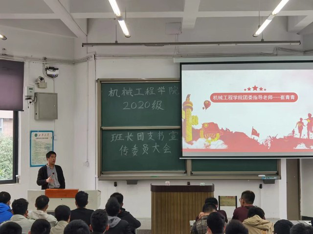 77779193永利官网团委组织部与宣传部在10月18日上午在5C203召开学生骨干2020级新生班长团支书宣传委员培训大会。会上,崔青青老师对班委的工作进行了大致总结介绍,强调了班委对团支部、学院之间的纽带关系,同时告诫班委要调节好学习与工作的关系,保证两者之间的平衡。之后,组织部周朝政对智慧团建以及青年大学习工作进行详细介绍和讲解,确保每个班委能够了解工作如何开展,也通知了青年大学习考核制度,让班委了解到青年大学习的重要性。随后,组织部龚登凤对团组织生活和团日活动进行细致地讲述,宣传部吴昊向班委介绍了宣传部的工作。最后,组织部朱浩然和团副周甜甜对会议内容进行补充。