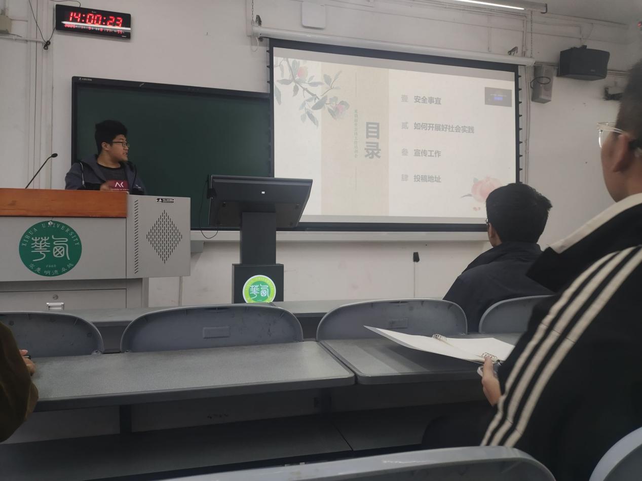 会上,社会实践指导中心部长张苏雨着重强调了以安全为开展一切工作的基准,活动过程要多记录、多留影,并及时报送新闻稿。随后,张苏雨为大家分享了历年学院开展寒假招生宣传志愿活动的经验和成果,并针对同学们的疑问展开了细致解答。