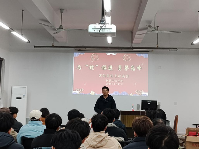 座谈会上,李强副书记代表学院全体教职工向同学们致以诚挚的关心和问候,并详细了解同学们留校期间的学习情况、生活情况及家庭状况等。他表示:“回顾2024年,我们有成功的喜悦,也还有需要提高和留有遗憾的地方。这些点点滴滴都是我们成长路上宝贵的财富,是我们继续前行的动力。在2025年,我们要不忘初心,砥砺前行,坚持好的方面,努力提升和改进不足。我们要继续努力,知难而进,自强不息,用我们的双手和汗水,书写属于自己的精彩人生。”