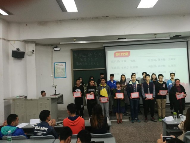伴着节奏激昂的团歌,大会正式拉开帷幕。随后主席团代表王子银主席上台讲话,与我们分享了自己在大学生活中的所闻所感,激励我们在大学里努力去成就一个更好的自己。接下来的部门风采展示中,一张张照片记录着每个部门携手走过的点点滴滴,让大家感慨万分。进入到颁奖环节,大会表彰了本月优秀部门、部长以及部门之星,并由部长代表杨倩讲话,向同学们分享了自己的经验,同时向大家宣传了即将到来的全校运动会。接着进入到激动人心的游戏环节,同学们根据剪影猜人物,也将大会气氛带入了高潮。最后本次大会在同学们《相亲相爱》的歌声中圆满落幕。