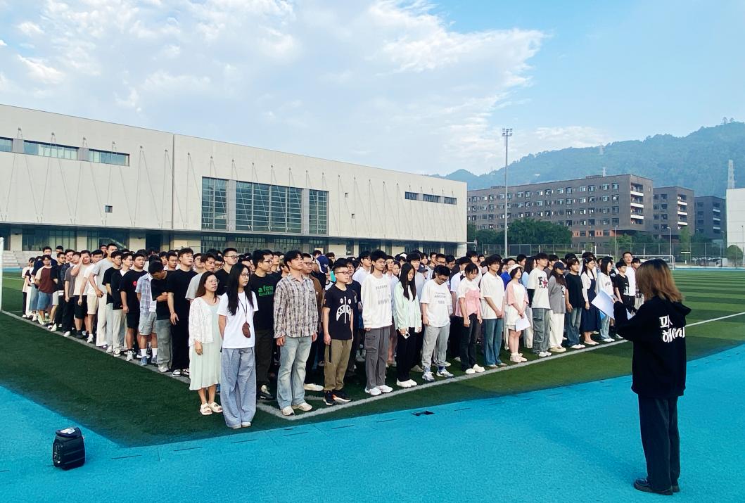 随后,全体师生深情朗诵《祖国啊,我亲爱的祖国》,抒发对祖国的热爱与未来憧憬。辅导员薛敏寄语同学们珍惜时光、砥砺奋进,将个人理想融入国家发展,以实际行动践行青春誓言,勇担时代使命。