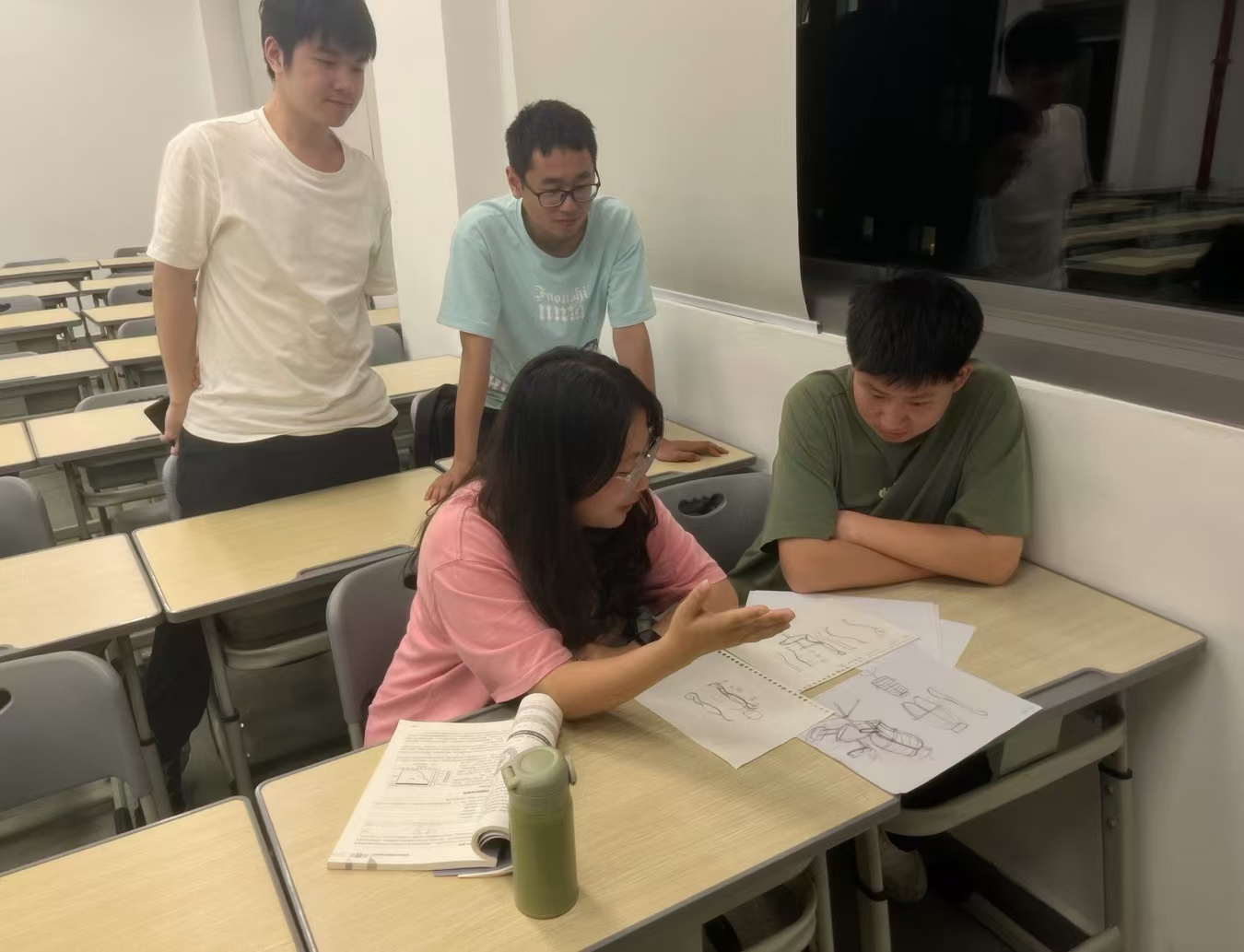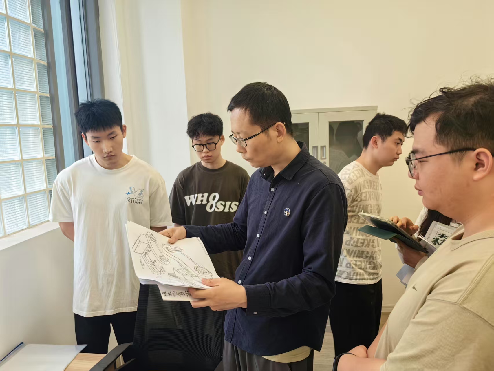 下面照片为教研活动讨论时的照片及导师指导学生优化设计竞赛作品的场景。