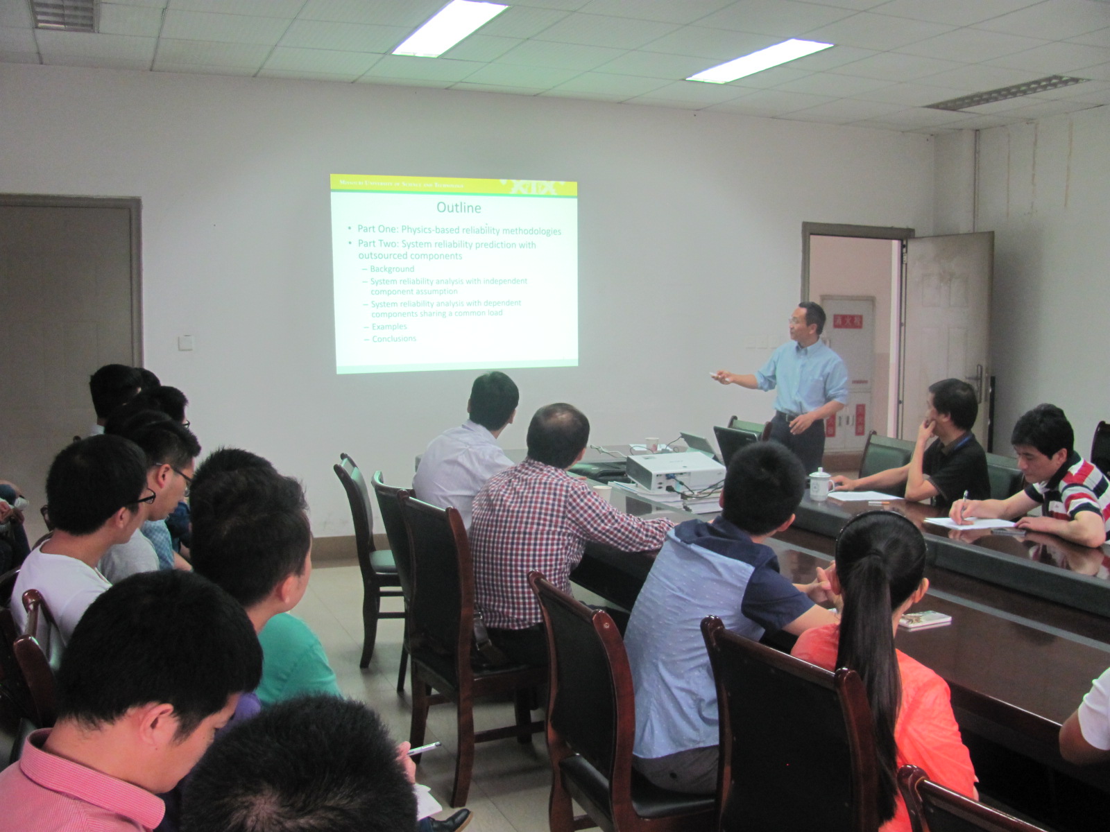 5月20日上午10点,美国密苏里科技大学机械与航空工程系教授、博士研究生导师、智能系统中心研究员杜小平博士在5A-224作了一场题为“Reliability Prediction in Early System Design Stage”的学术报告。报告会由77779193永利官网张均富教授主持,机械学院相关系部教师和部分研究生、本科生参与了学术报告会。报告会主要介绍了工业产品在设计阶段的可靠性预测、系统的可靠性预测及时变问题等若干重要的工程理论问题。在座的研究生和青年教师热烈地参与了讨论,整个报告会的学术信息量很大,引起了老师们的浓厚兴趣。