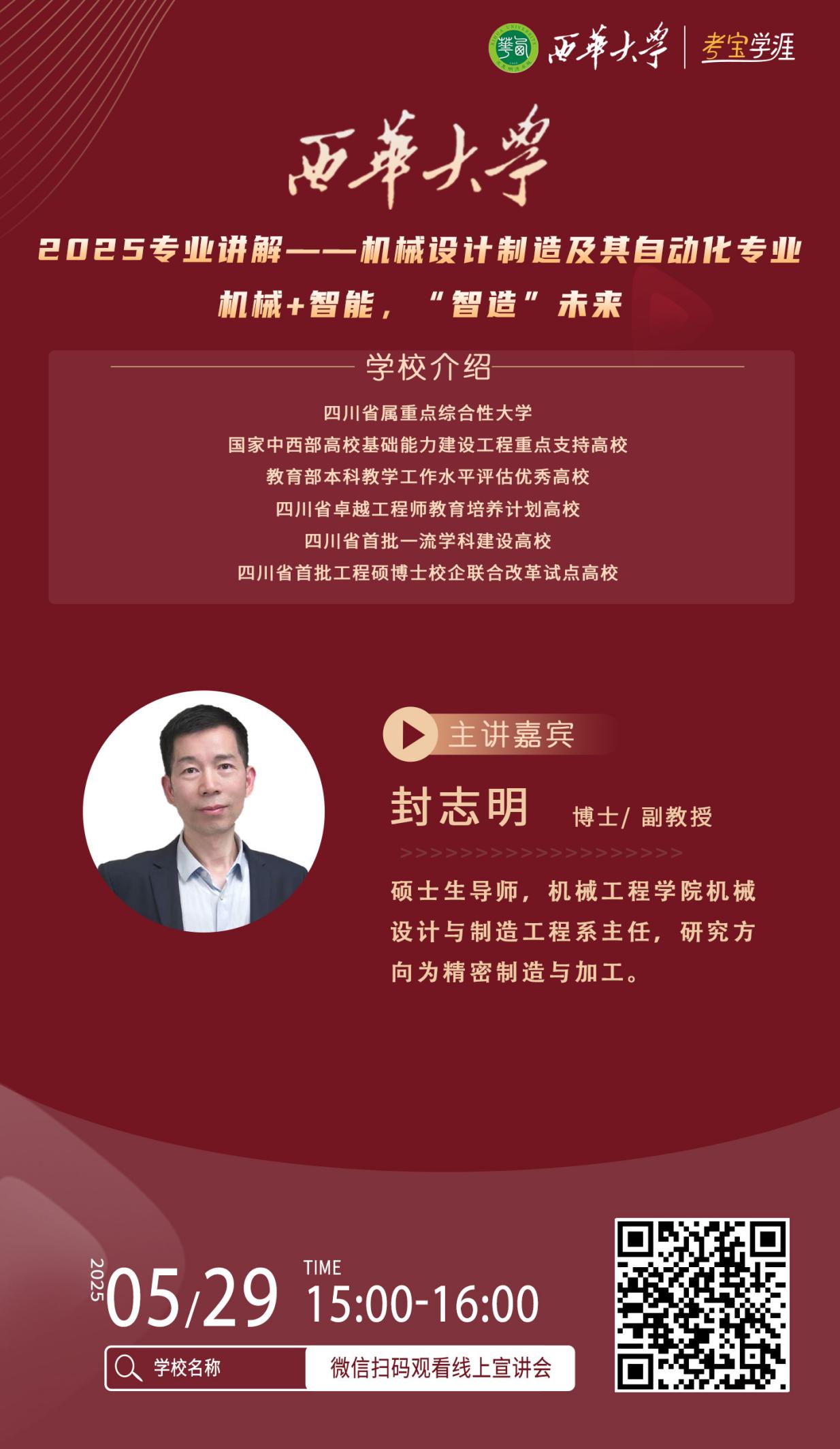机械设计制造及其自动化:2025年5月29日15:00-16:00