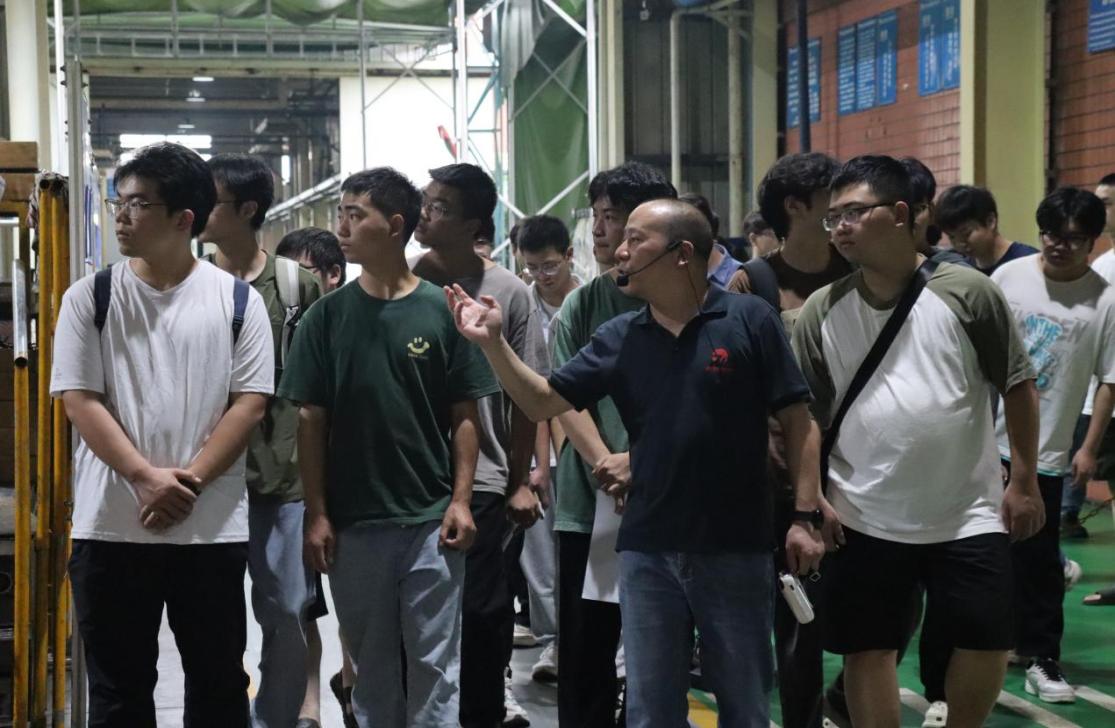 到达后,在公司一工厂厂长曾馨的热情引导下,师生们首先深度参观了企业生产车间。通过近距离观察现代化的生产线、先进的加工设备以及严谨的质量控制流程,师生们对正恒动力在发动机缸体、缸盖等关键汽车零部件领域的研发实力、制造工艺和管理水平有了直观而深刻的认识。