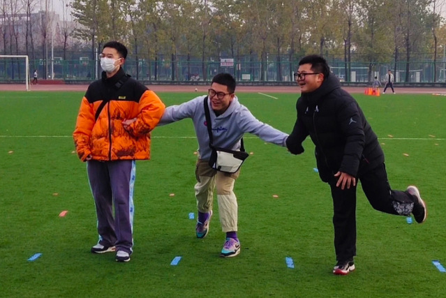 此次活动共有五个游戏,有蒙眼敲鼓、长杆跑、一二三木头人、踩气球大混战、游戏接力和大力士拔河。每个部门每个人使出浑身解数,对内团结一致,对外秉承“友谊第一,比赛第二”,现场气氛和谐,一片欢声笑语,每个人都积极参与到游戏中。游戏结束后,各部门清理操场上遗留的垃圾并合照留影,本次活动圆满结束。