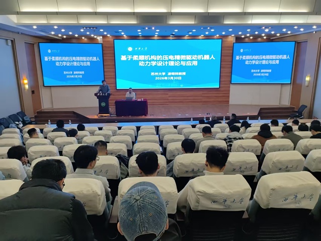 随后,凌明祥教授重点分享了团队在柔顺机构动力学建模分析领域的核心成果——矩阵力学方法,详细阐述了该方法在解决柔顺机构设计难题中的应用原理与实践价值。同时,他结合具体研究案例,介绍了宏-微-纳跨尺度精密运动器件及多自由度微纳操作机器人的最新设计进展,展示了该领域的前沿技术成果与应用前景。报告最后,凌明祥教授对精密驱动装备研发及感知智能化的未来发展方向进行简要展望,为在场师生提供了清晰的科研指引。