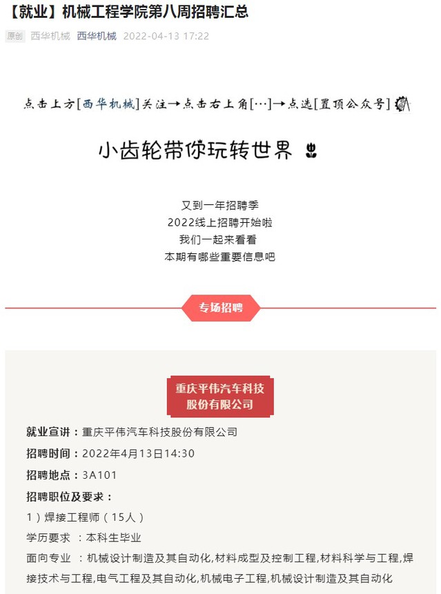 今年4月以来,学院2022届毕业生陆续获得川润股份、中创新航等企业录取资格,目前已达成意向就业100余人,签约就业70余人,其他企业的面试复试工作正在有条不紊进行,学院2022届毕业生就业管理与服务工作有序推进中。
