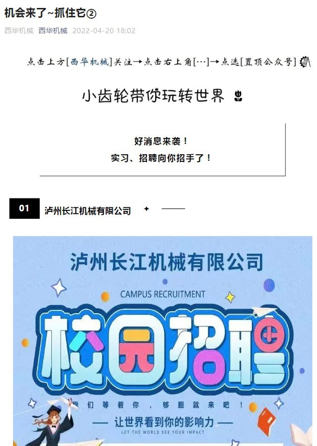 学院持续做好来访、走访单位招聘需求发布工作。4月份接待用人单位共计28家,主动对接四川铭能科技开发有限公司、深圳市国力昂科技有限公司等6家科技型企业,积极拓展就业岗位,推荐永利官网毕业生,竭力为2022届毕业生做好就业指导服务工作。通过西华机械公众号、学院网站招生就业板块等平台发布就业资讯和基层就业政策及项目30余条;另外,与四川华侨凤凰纸业有限公司、川润股份有限公司、四川永祥股份有限公司等用人单位就持续提供实习实践、输送技能人才等校企合作形式达成共识。