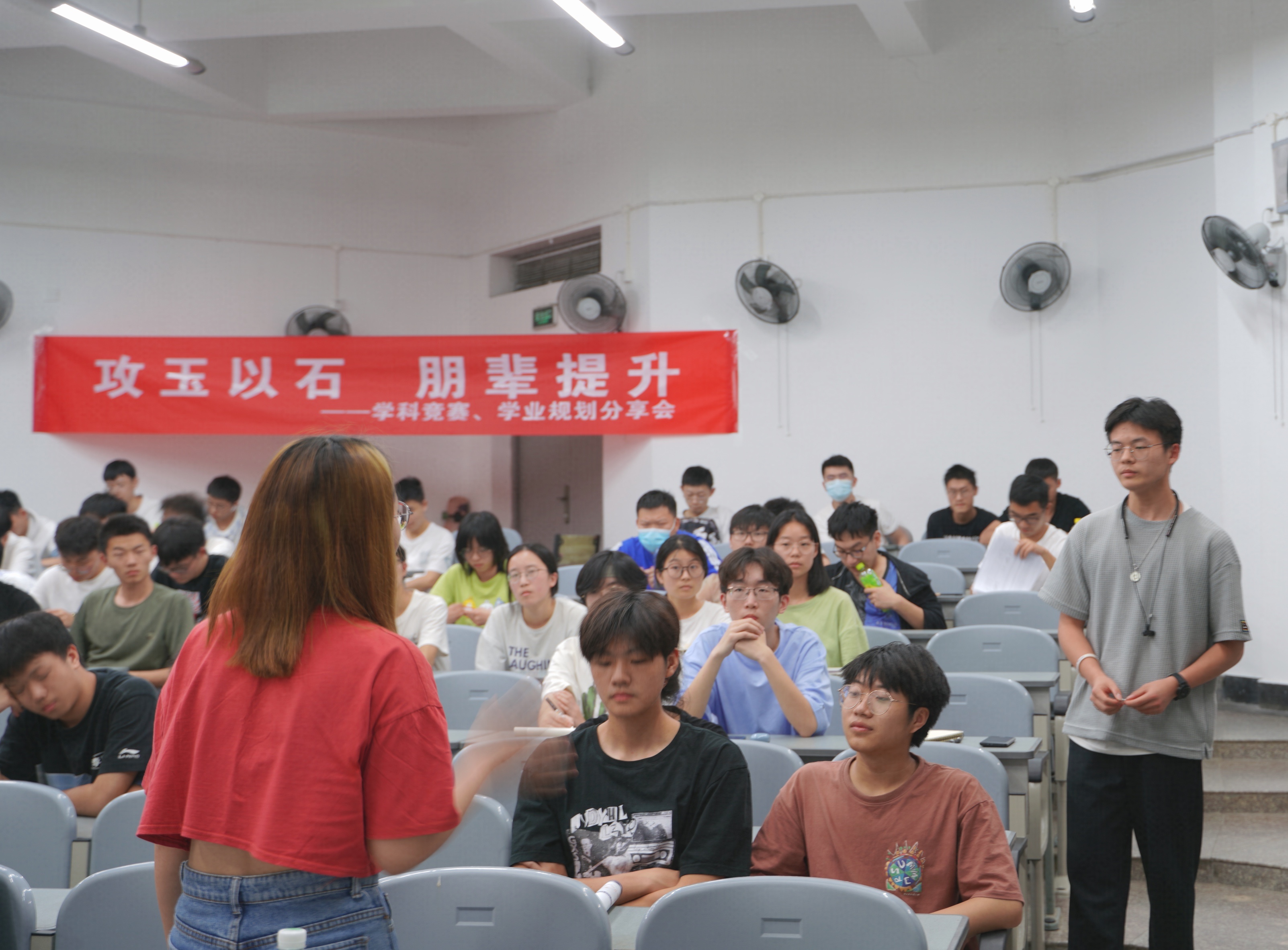 分享会的最后同学们踊跃提问,学长学姐们耐心解答,陈昶老师就本次分享会做出总结。他结合机械专业目前发展的趋势,对每一位同学提出了要以兴趣为帆,实践为桨,在专业知识的海洋里乘风破浪的总目标。他希望与会的同学都能有所感悟,在今后的学习生活中,以此为榜样走出自己多彩的人生。