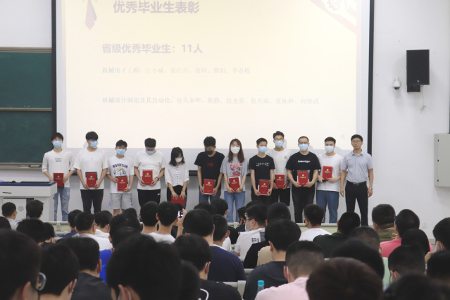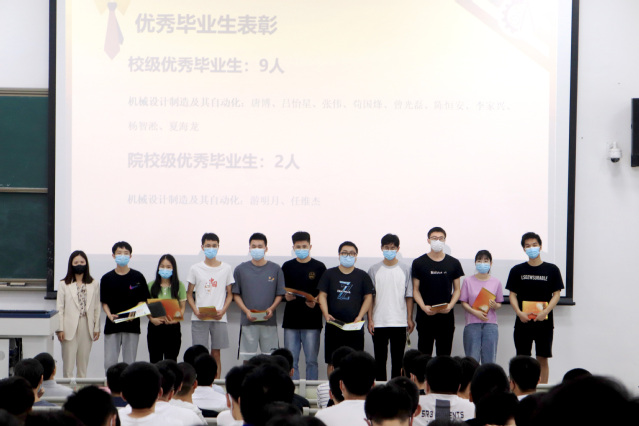颁奖仪式。在过去两年学习中,很多学生学思并重,勤学奋进,表现优异,为表彰优秀学子,见面会现场,党委副书记李强为学院宜宾校区11名省级优秀毕业生颁奖,辅导员周岐燃、薛敏为20名校级、院级优秀毕业生颁奖,鼓励他们不断做到“求实、明德、卓越”,并送上纪念奖品,合影留恋。