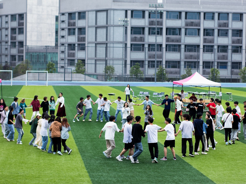 下午4:30分,在积极向上的《颂青春》的朗诵声中,游园会正式拉开序幕,在优美轻快的背景歌声中,集体游戏爱的抱抱、老鹰抓小鸡等游戏充分调动了同学们热情,活动现场顿时热闹了起来。来自不同学院的同学们通过参与你画我猜、踩气球、投壶、趣味盲盒、数字挑战、知识竞答、心灵寄语等小游戏集章兑奖,一时间,欢乐和谐的氛围弥漫到了整个校园。活动现场大家都铆足干劲,积极参与游戏,享受游戏,遇到游戏难点,积极与其他参与者合作,共克困难,赢得游戏。