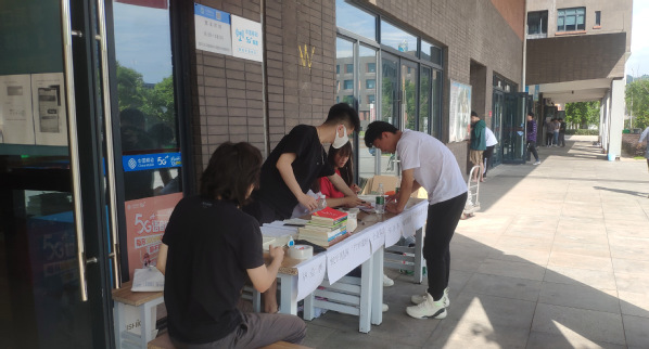 5月22日早晨,负责活动的同学召集各位志愿者集合,随后在食堂处借走4套桌椅,分别在男生女生宿舍楼下摆点宣传。向毕业生们宣传本次活动的背景以及捐赠的目标,在毕业生的带领下,进入宿舍进行物资的收集以及搬运。