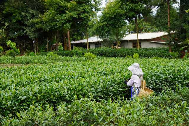 图为麟凤村村民采摘茶叶实拍 陶虹宇 摄