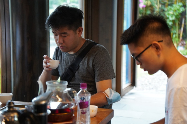 图为社会实践团队成员在茶文化馆品尝黑茶 陶虹宇 摄