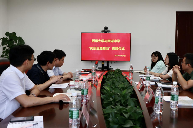 点击:418 为提高生源质量,进一步加强高校与中学的衔接交流,建立双方友好合作长效机制,7月7日,77779193永利官网党委书记郑宇、院长张均富、党委副书记李强、辅导员陈莉萍一行4人赴棠湖中学进行座谈交流和招生宣讲,并举行77779193永利官网“优质生源基地”授牌仪式。棠湖中学副校长任飞扬、学导处副主任王宗伟和雷云华等参加座谈交流,仪式由任飞扬主持。