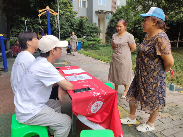 实践队成员与社区人员进行宣传交谈 守望者实践团队成员熊桢雁供图