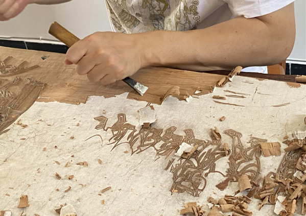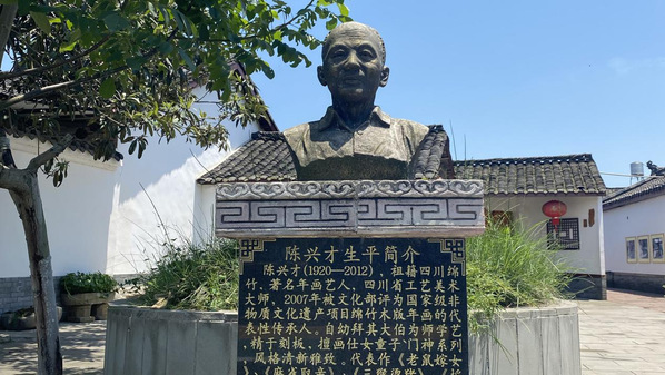 6月30日上午9点,多彩年画队社会实践团来到陈兴才故居拜访年画传承人陈刚。实践团走进陈氏家族的年画作坊,扑面而来的是浓厚的年画氛围,陈刚正在复刻《迎春图》,绵竹年画传承人陈兴才是陈刚的爷爷,是第一批国家级非物质文化遗产项目绵竹木版年画代表性传承人,他翻刻了许多传统样式的作品,与旧样几近相同,保持了绵竹年画的纯粹性,陈兴才的雕刻技法熟练,谙熟传统造型的方法程式。