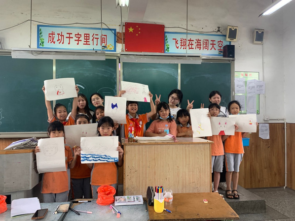 艺术是一个国家文化繁荣的体现,也是一个国家综合实力的集中体现;艺术是人类的精神追求,是物质生活极大丰富的体现,是最终的追求;艺术是高层次的觉悟,是人们综合素质提高的象征,是思想升华的表现;艺术是创新的手段,是推动社会进步的工具,是人类历史进步的表现。所以我们的活动也不仅仅局限于教小朋友们唱歌,我们还为孩子们准备了水彩和素描纸等,教室里响起的一阵沙沙声带领我们进入小朋友的世界里,那是一个童真的世界,亦是一个充满奇幻的世界。怀揣着对未来的无限期待,她们将自己心中的美好通过手中的笔表达了出来,未来如同星辰大海,有无限可能也藏着许多未知,志愿者们为孩子们答疑解惑,辅导绘画,帮助他们解决的只是成长路上的一小步,以后他们要面对的不仅仅是绘画方面的问题,希望他们能够像今日一般有不怕困难敢问敢做的勇气。