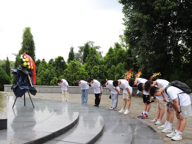 成都纪念馆的对面就是成都战役烈士陵园,队员们怀着激动的心情继续向前进发,“倾杯祭酒怀英烈,为国抛家血染梅。莫把中华精气竭,民心凝聚志难捶。”烈士陵园中安葬着217名烈士。烈士们为保卫中华民族的领土的完整,不惧牺牲,来到陵园墓地,队员们把手中的白花,把亲手编制的花篮送给最可敬的英雄。烈士的生命换来了中华大地的安宁与和平,烈士的鲜血激发了炎黄子孙的勇气与忠诚。扶今怀昔知西来,队员们重拾红色记忆,带着这份红色记忆缓缓地走出了烈士陵园。